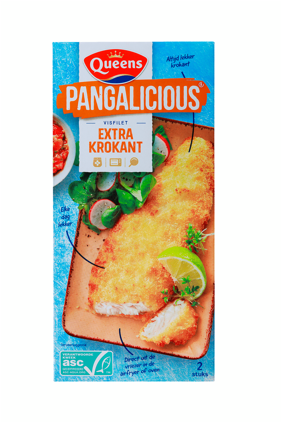 Geniet van de heerlijke Queens Pangalicious Extra Krokant, een zachte pangasiusfilet in een krokant jasje. Ideaal voor warme maaltijden of als smakelijke lunch op een knapperig broodje. Dit product is vriesvers en eenvoudig te bereiden in de airfryer: perfect voor een snelle en lekkere maaltijd.