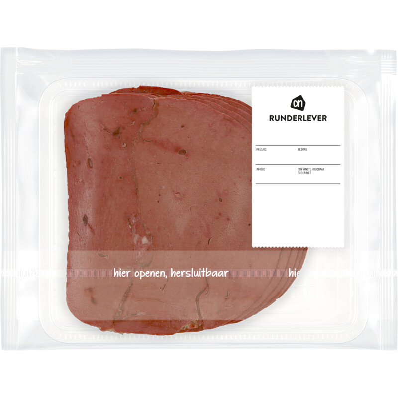 De AH Runderlever is een hoogwaardige vleessoort die perfect geschikt is voor op brood of als smaakvolle toevoeging aan diverse gerechten. Met een unieke combinatie van zout en een lichte bitterheid, biedt deze runderlever een bijzondere smaaksensatie. Dit product is gemakkelijk in porties te gebruiken en ideaal voor een snelle snack of als onderdeel van een hartige maaltijd.