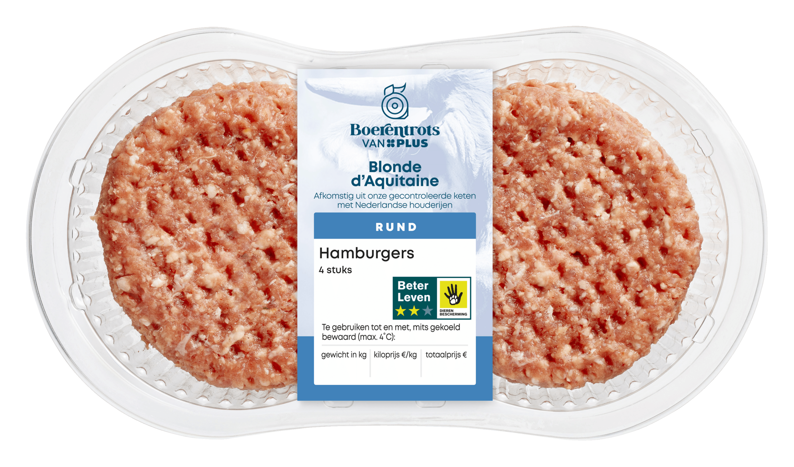 PLUS Boerentrots Blonde d’Aquitaine Hamburgers 4 stuks – Plus
