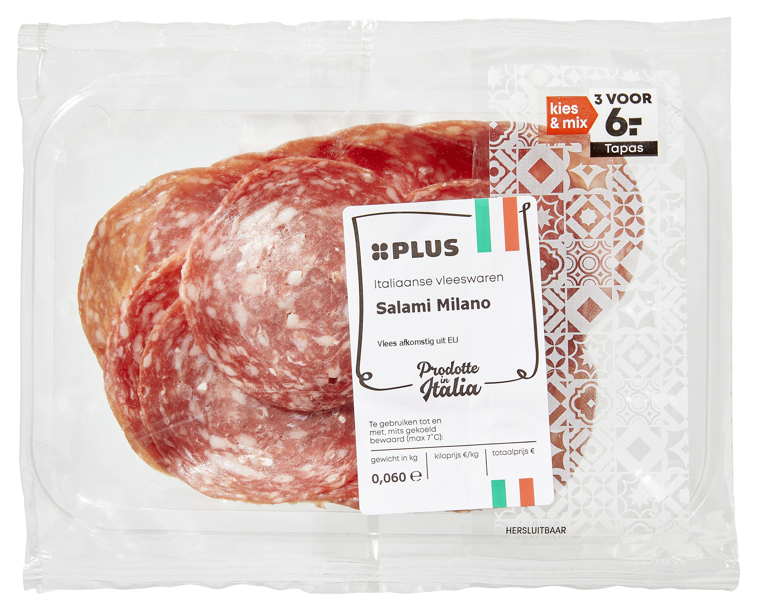 Geniet van de heerlijke smaak van PLUS Salami Milano, gemaakt van gefermenteerd varkensvlees. Deze smaakvolle salami is perfect voor op een borrelplank of als snelle snack. Bewaar de salami gekoeld (max. 7ยฐC) en profiteer van de actie: 3 voor 6.00 euro. Met een Nutri-Score E is deze salami een rijke bron van eiwitten en smaak.