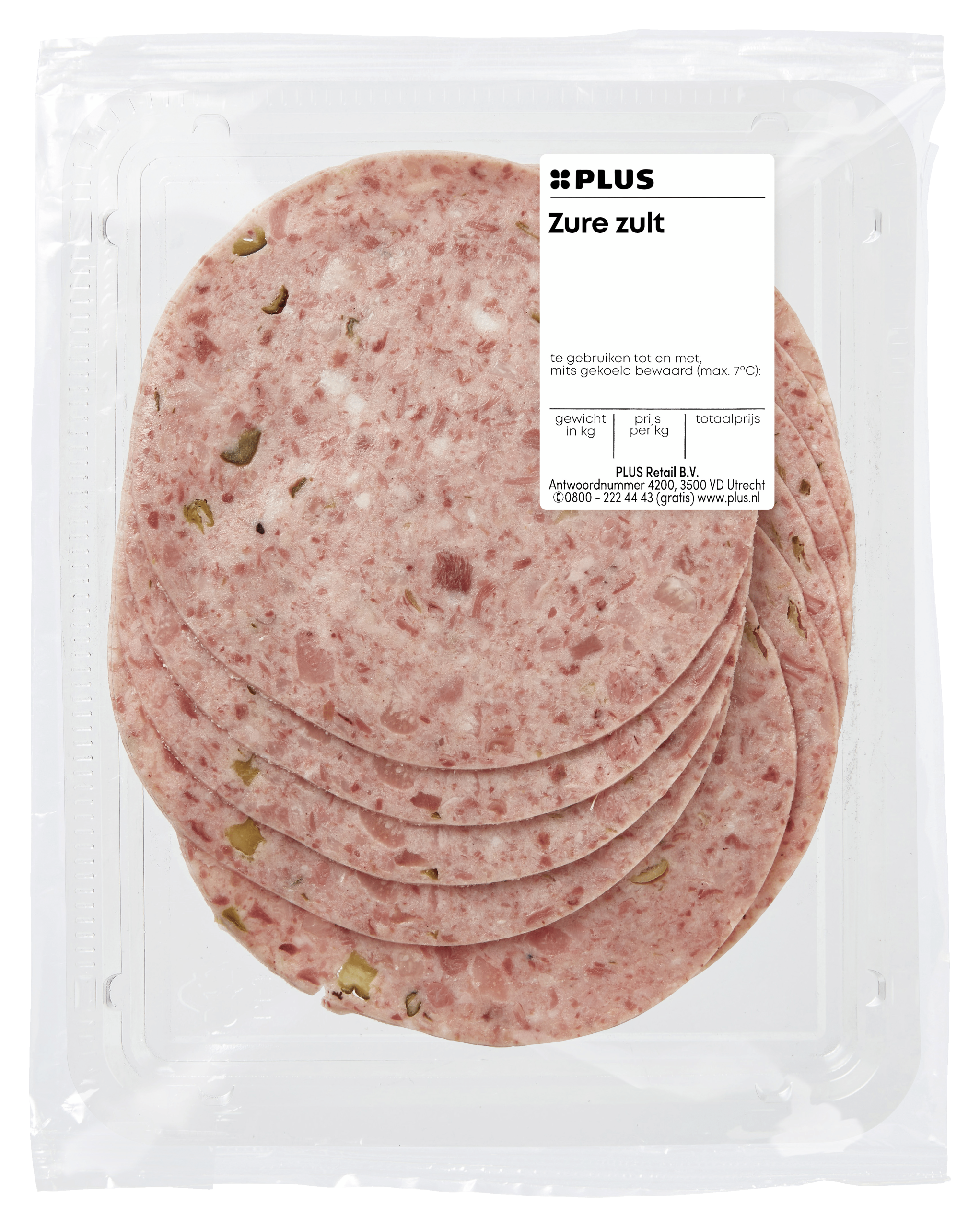 Geniet van de authentieke smaak van PLUS Zure zult, een traditioneel varkens- en rundvleesproduct met een heerlijke mix van vlees, kruiden en specerijen. Dit product bevat 46% vlees en is perfect voor bij de borrel of als onderdeel van een luxe brunch. Bewaar het product bij een maximum temperatuur van 7ยฐC.