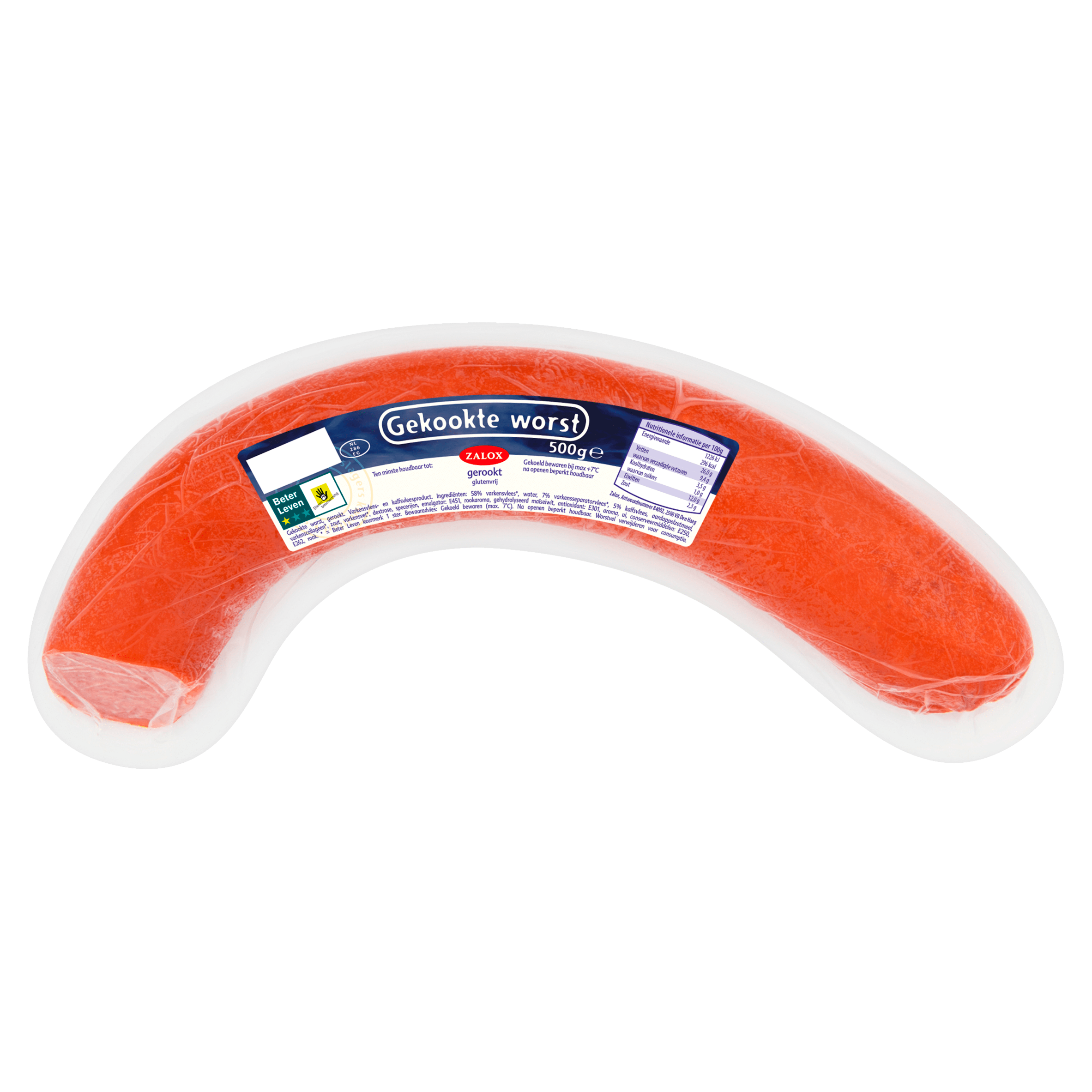 Geniet van de Zalox Gekookte worst, een heerlijk varkens- en kalfsvleesproduct met een unieke rooksmaak. Deze worst is glutenvrij en heeft het Beter Leven keurmerk met 1 ster. Perfect om te gebruiken in diverse gerechten of gewoon als snack! Bewaar de worst gekoeld en gebruik deze binnen de aanbevolen tijd na opening.