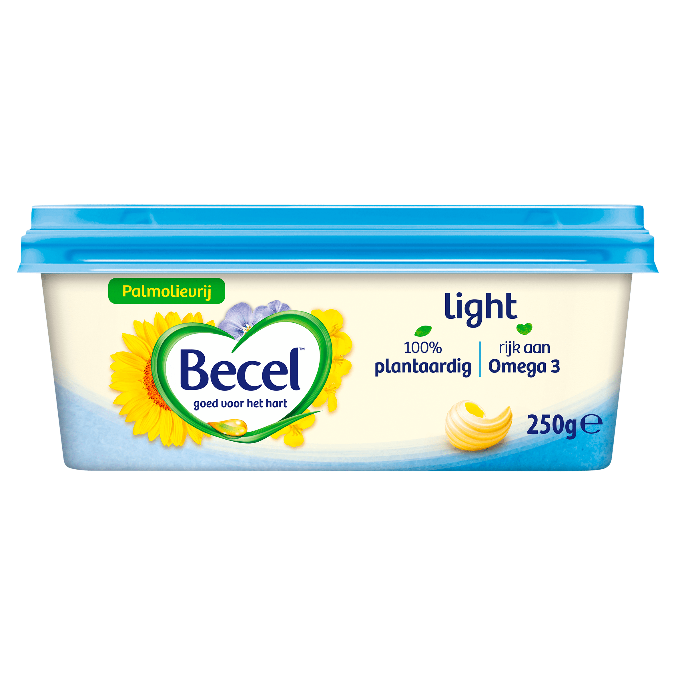 Becel Light is een 100% plantaardige boter die is perfect voor jouw hartgezondheid. Met een mix van zonnebloem-, lijnzaad- en koolzaadolie is deze boter rijk aan Omega 3 en bevat het van nature Omega 6 die bijdraagt aan een gezond cholesterolgehalte in het bloed. Deze variant bevat 30% minder calorieรซn dan de originele Becel en is vrij van kunstmatige kleur- en smaakstoffen. Ideaal voor op brood of als basis voor diverse gerechten.
