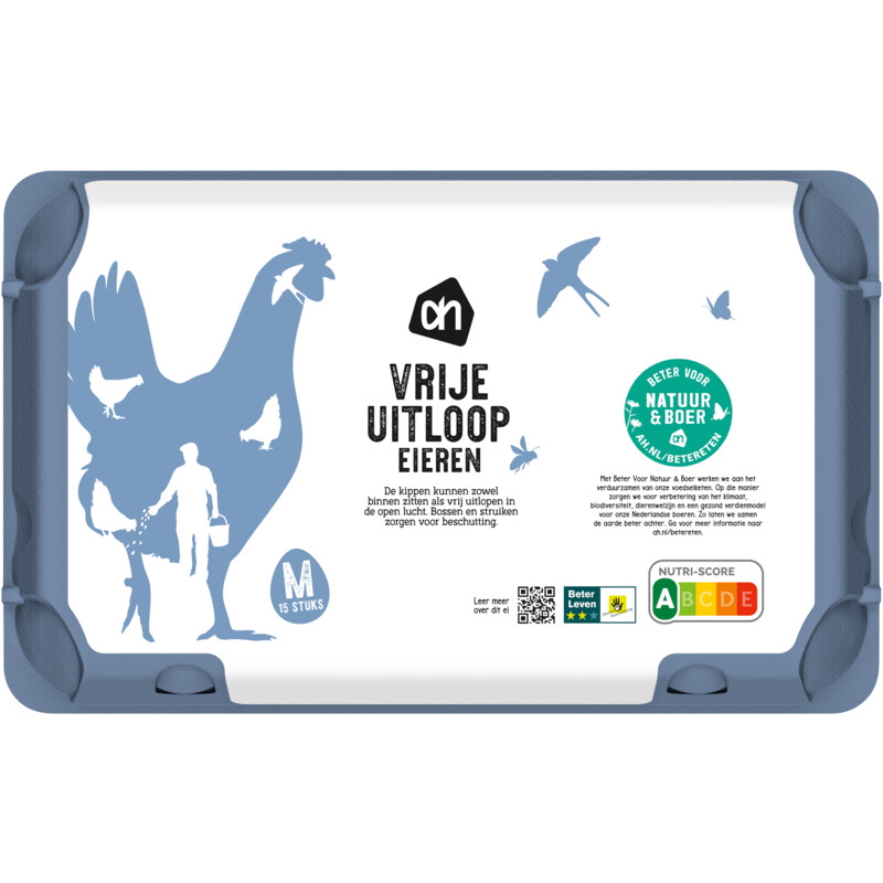 Geniet van de smaak en kwaliteit van onze AH Vrije Uitloop Eieren, met zorg gelegd door kippen die de vrijheid hebben om buiten te scharrelen. Deze kwaliteitsklasse A eieren zijn niet alleen lekker, maar ook verantwoord. Met het Beter Voor Natuur & Boer keurmerk dragen we bij aan een duurzaam voedselsysteem, waarbij het welzijn van de dieren centraal staat. Perfect voor een gezonde maaltijd of als ingrediรซnt in je favoriete gerechten!