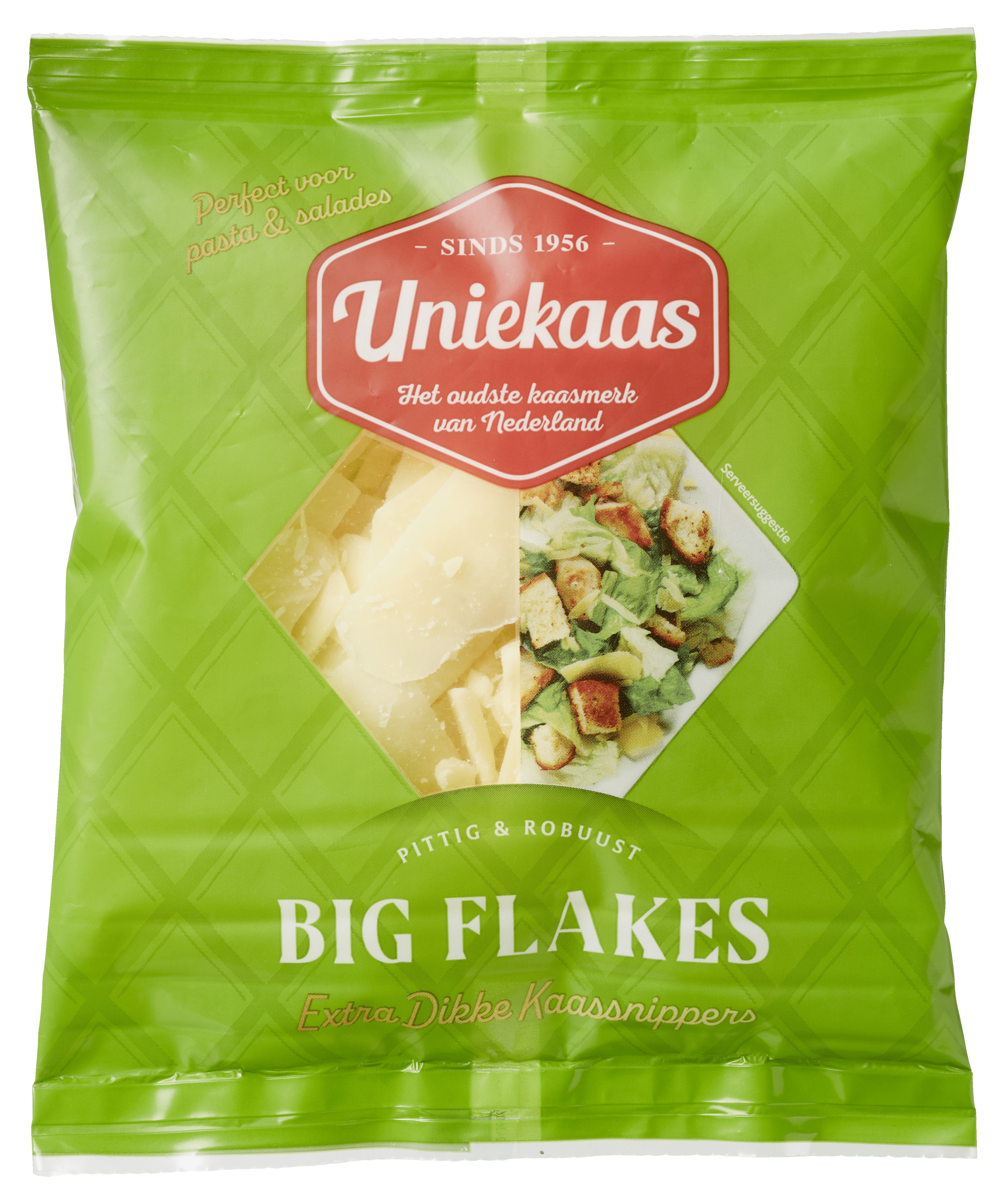 Ontdek de heerlijke Uniekaas Big Flakes, extra grote en dikke kaassnippers die perfect zijn als topping over carpaccio, salades of pastagerechten. Geniet van de rijke smaak en de veelzijdigheid van deze kaas. Bewaar de flakes gekoeld bij maximaal 7ยฐC voor een langdurige versheid.