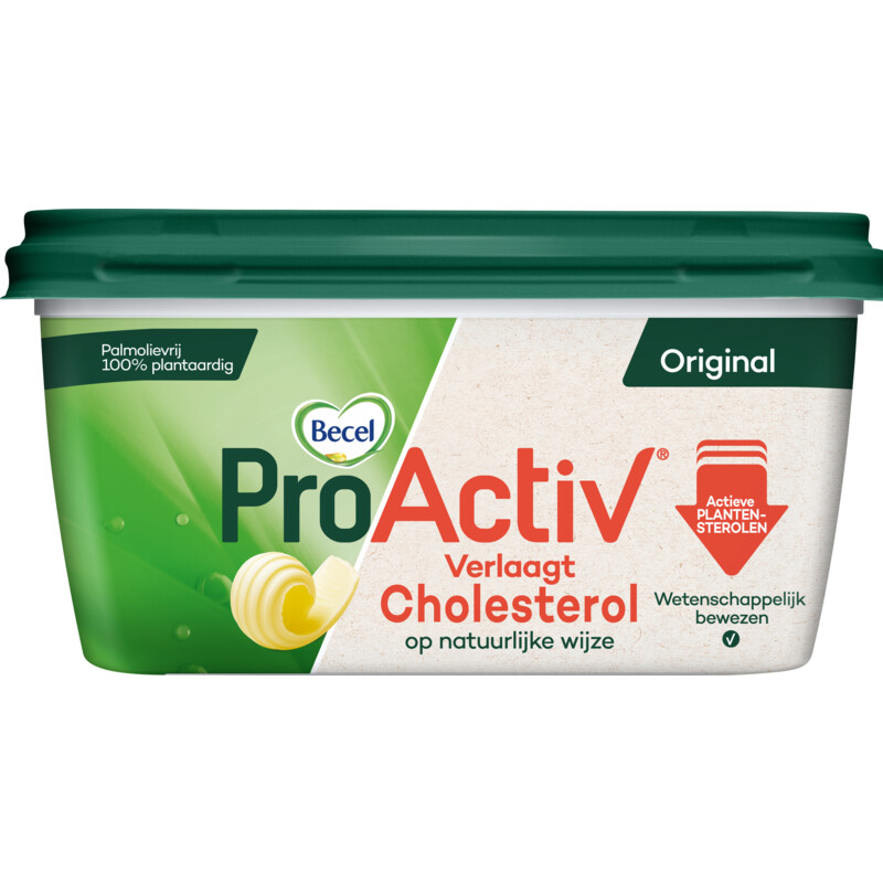 Becel Proactiv Original is een 100% plantaardig smeerbaar product dat zorgvuldig is samengesteld met een mix van hoogwaardige plantaardige oliรซn. Verrijkt met plantensterolen, helpt dit product actief je cholesterolgehalte te verlagen. Geniet van de heerlijke smaak van Becel Proactiv op je brood, terwijl je zorgt voor een gezondere levensstijl. Met slechts 30 gram per dag, verdeeld over drie porties, kan dit product bijdragen aan een verlaging van je cholesterol met 7 tot 10% na slechts 2 tot 3 weken gebruik. Vrij van kunstmatige kleur- en smaakstoffen en palmolievrij, is Becel Proactiv de ideale keuze voor gezondheid en smaak.