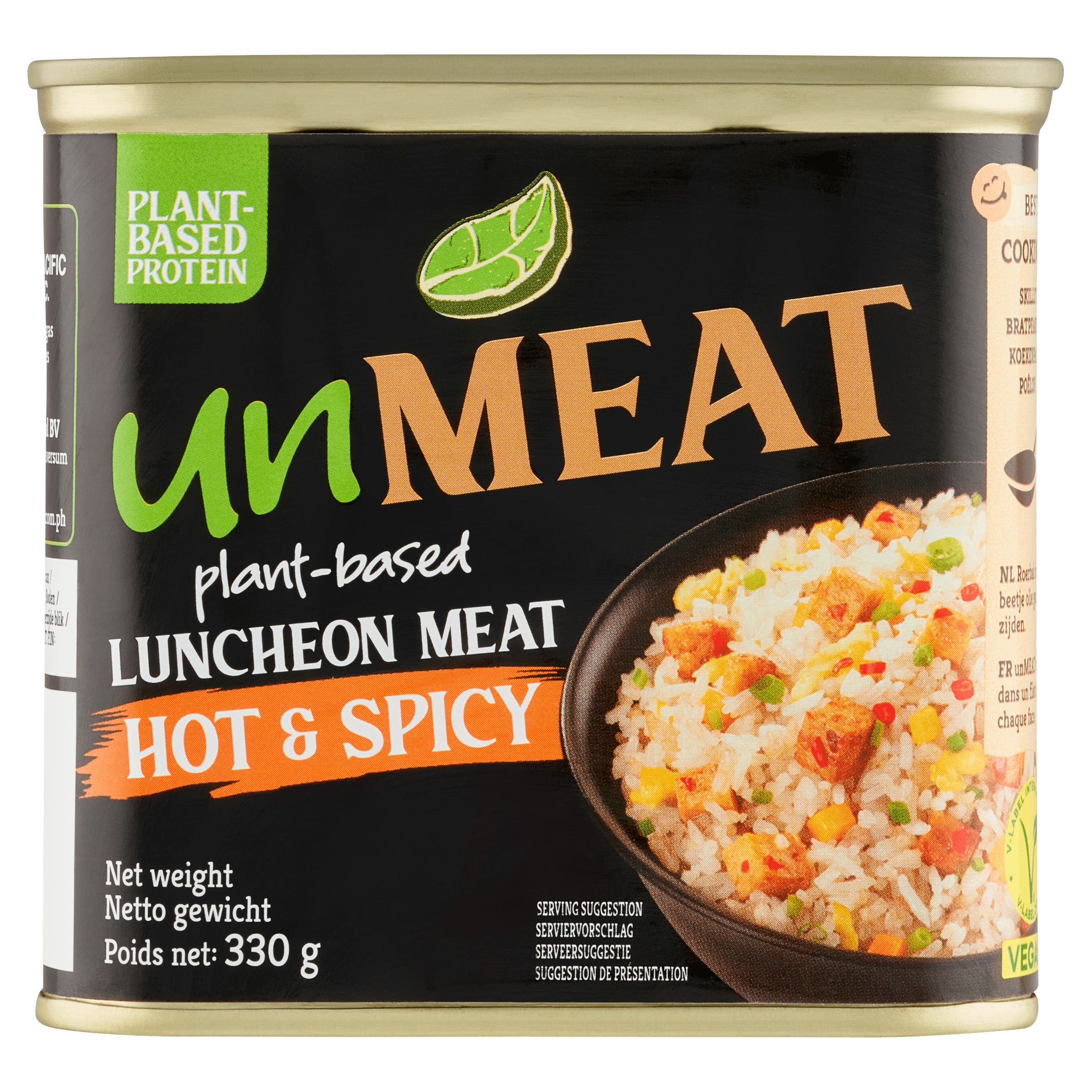 Un Meat Plant based lunchmeat hot & spicy is een hoogwaardig plantaardig alternatief voor traditionele vleeswaren. Met 19% soja-eiwit is dit product niet alleen rijk aan eiwitten, maar ook perfect voor de veganist die houdt van pittige smaken. Roerbak het in een beetje olie voor een snelle en smakelijke toevoeging aan jouw gerechten. Bewaar het na opening in de koelkast en geniet binnen drie dagen.