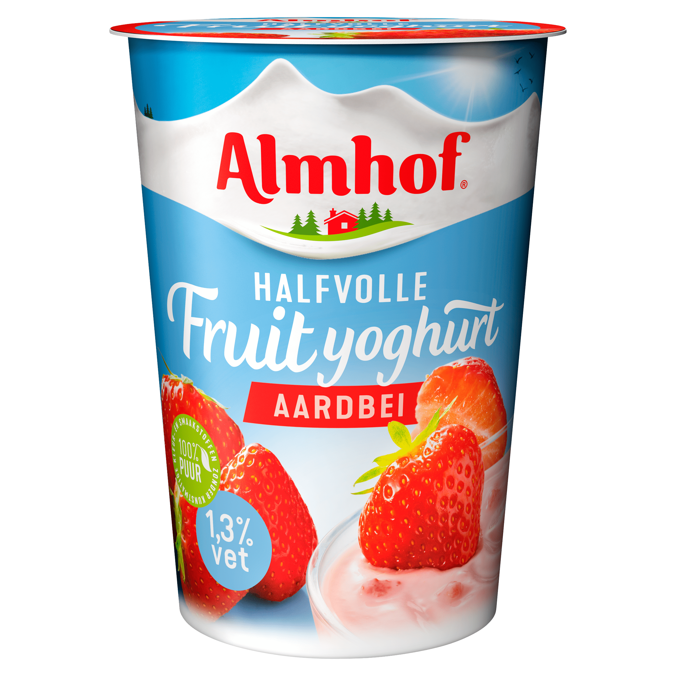 Geniet van de verfrissende smaak van Almhof Halfvolle Fruityoghurt Aardbei. Met slechts 1,3% vet en gemaakt van de beste aardbeien, is deze yoghurt een heerlijke keuze voor elke gelegenheid. Voorzien van natuurlijke ingrediรซnten en zonder kunstmatige kleur- en smaakstoffen, bied deze romige yoghurt een gezonde en smakelijke optie voor liefhebbers van fruitige yoghurts. Perfect voor bij het ontbijt of als tussendoortje!