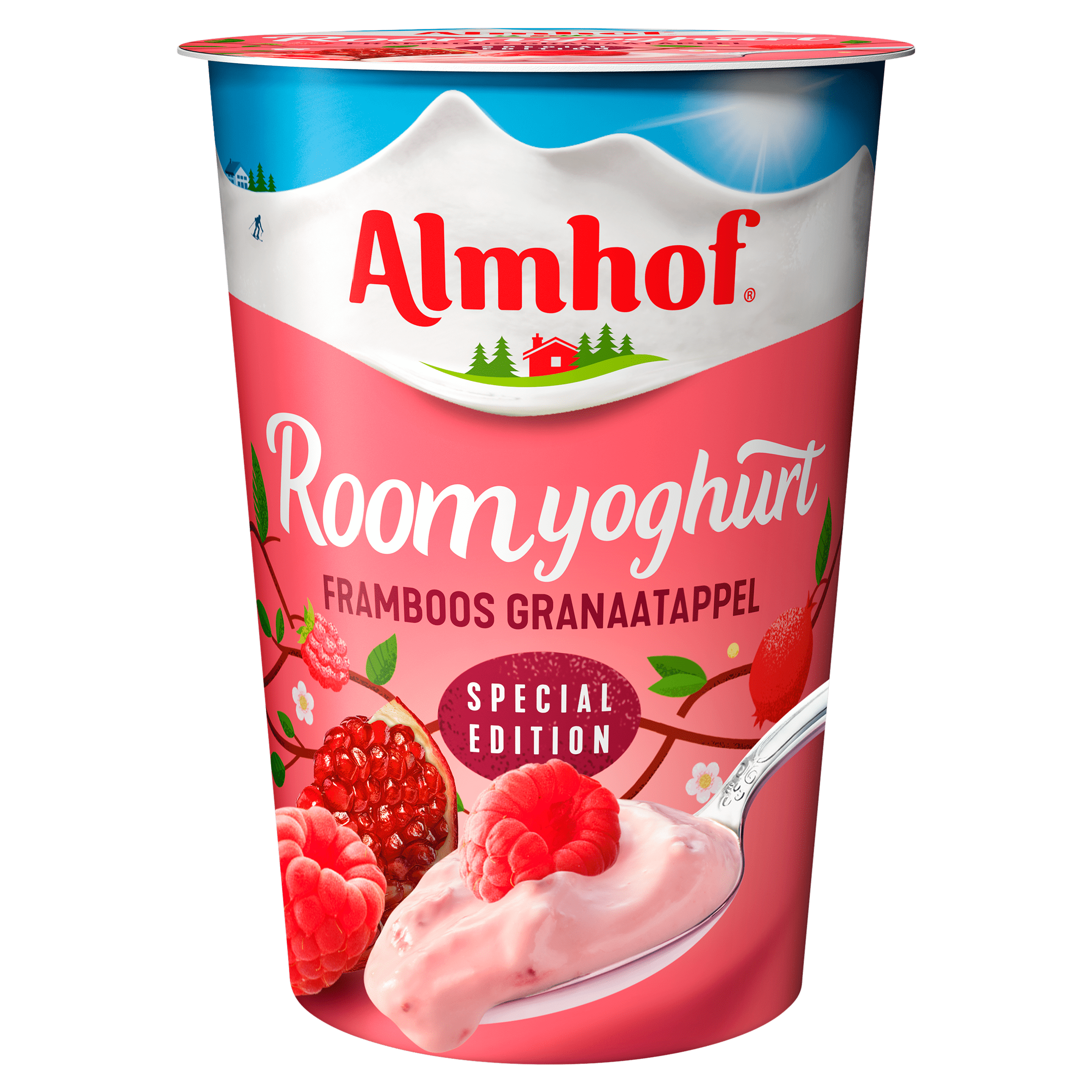 Almhof Roomyoghurt framboos granaatappel – Plus