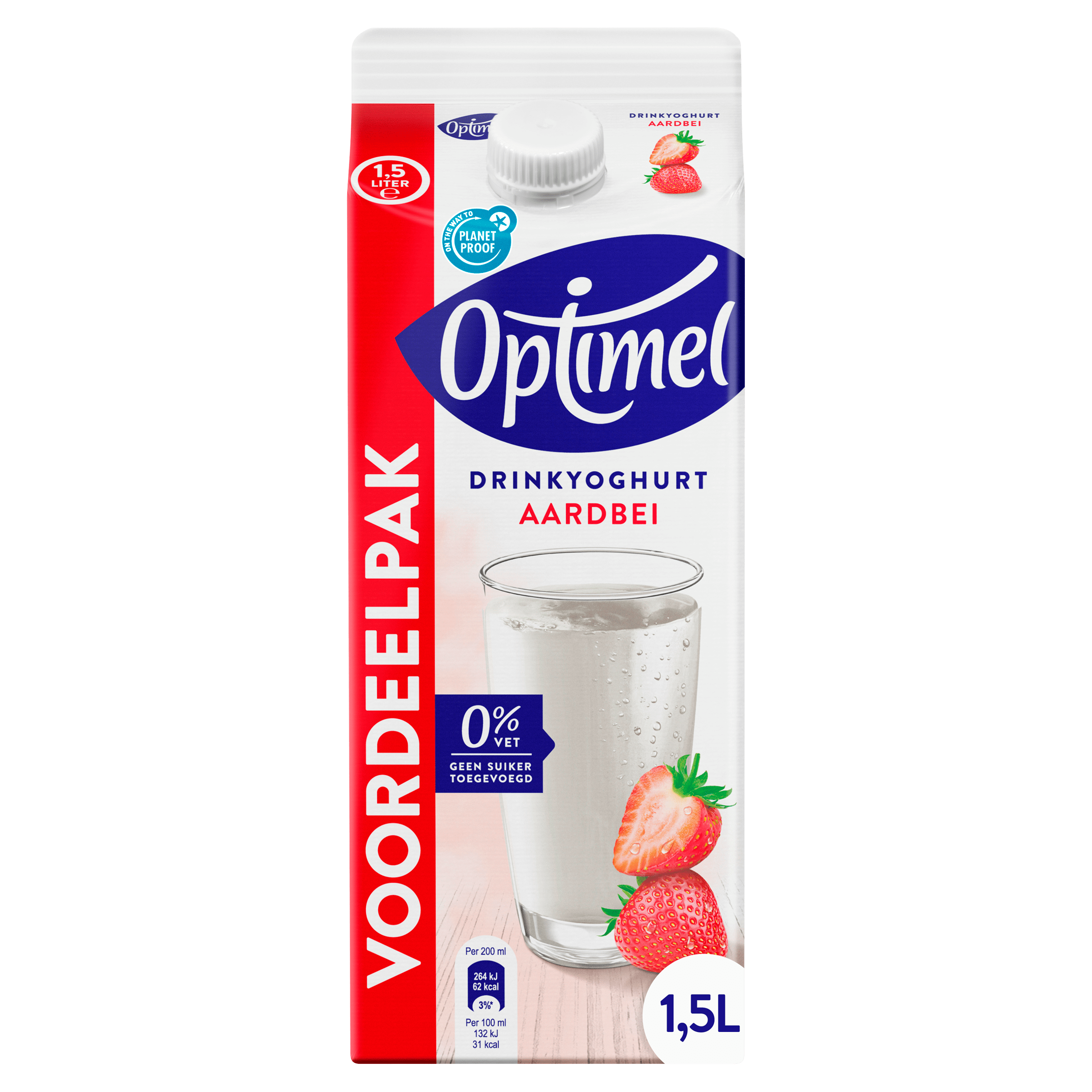Geniet van de heerlijke smaak van Optimel Drink Aardbei 0% vet! Deze magere drinkyoghurt is niet alleen rijk aan smaak door de combinatie van frisse aardbeien en milde yoghurt, maar bevat ook geen toegevoegde suikers. Met slechts 31 kcal per 100 ml is dit een perfecte verfrissing voor elk moment van de dag. Optimel zorgt voor een dagelijkse portie proteรฏne, ideaal voor spierondersteuning. Bovendien is dit product On the way to Planet Proof en is het verpakt in een duurzame Elopak Pure-Pakยฎ diamond verpakking.
